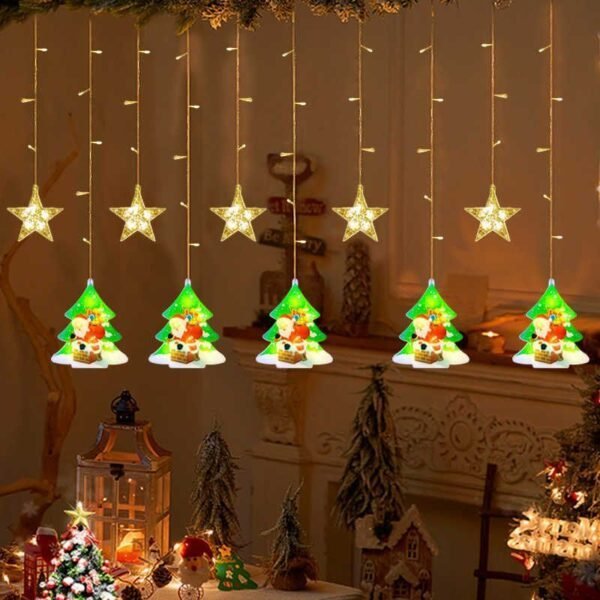 Χριστουγεννιάτικα διακοσμητικά φώτα LED τύπου κουρτίνα με σχέδιο έλατα και αστέρια.