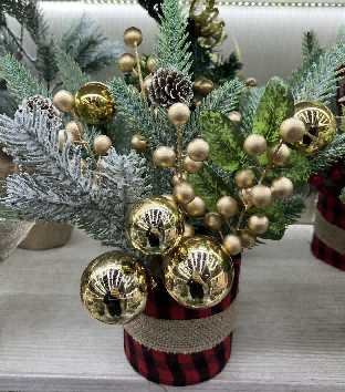 Χριστουγεννιάτικο διακοσμητικό δεντράκι με επιτραπέζια βάση και εντυπωσιακή σύνθεση με στολίδια και υπέροχες ρεαλιστικές λεπτομέρειες. Ύψος: 30cm.