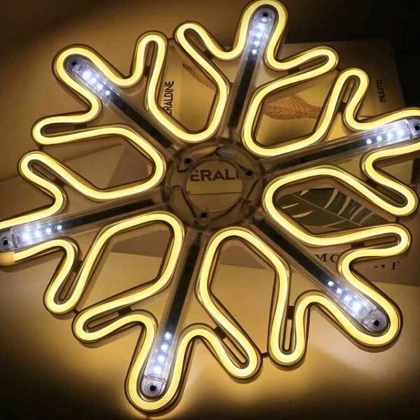 Χριστουγεννιάτικο φωτεινό διακοσμητικό σε σχέδιο Χιονονιφάδα με φωτοσωλήνα LED Neon και ενδιάμεσα φωτάκια με γραμμική κίνηση που δημιουργούν ένα εντυπωσιακό εφέ φωτισμού.
