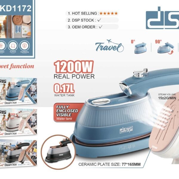 Σίδερο ατμού της DSP πτυσσόμενο, σε mini travel size, ιδανικό για μεταφορά στα ταξίδια σας ή για ένα εύκολο και γρήγορο φρεσκάρισμα των ρούχων σας χωρίς να χρειαστεί να συνδέσετε το οικιακό σας σίδερο. Υψηλής ποιότητας κατασκευή με τεχνολογία διείσδυσης ατμού για εύκολο σιδέρωμα με ένα πέρασμα.
