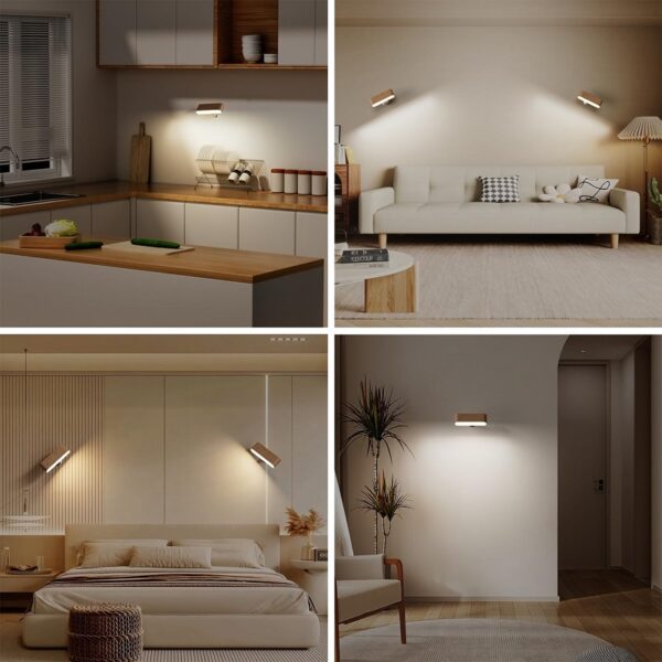 Επιτοίχιο διακοσμητικό φωτιστικό LED σε μοντέρνο σχεδιασμό με ξύλινο εφέ, επαναφορτιζόμενο, με μέγιστη αυτονομία μπαταρίας έως 10 ώρες.