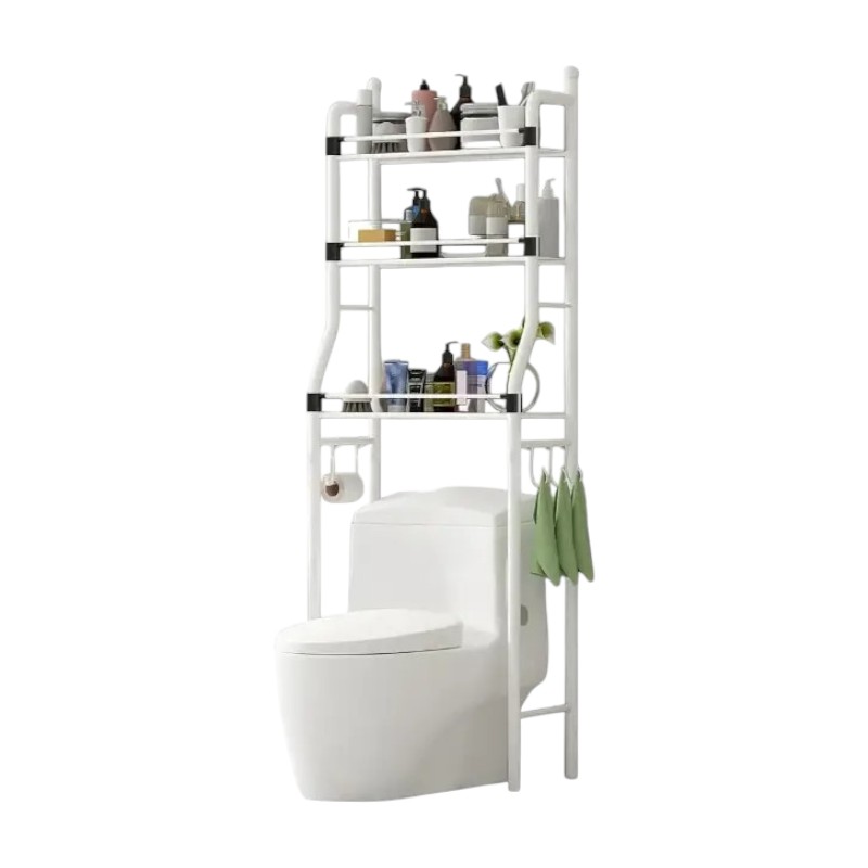 Επιδαπέδια ραφιέρα μπάνιου μεταλλική, συναρμολογούμενη, με 3 πρακτικά ράφια και πλαϊνές κρεμάστρες, ιδανική για οργάνωση και εξοικονόμηση χώρου καθώς τοποθετείται επάνω από τη λεκάνη τουαλέτας. Διαστάσεις: 48 × 25 x 156cm.