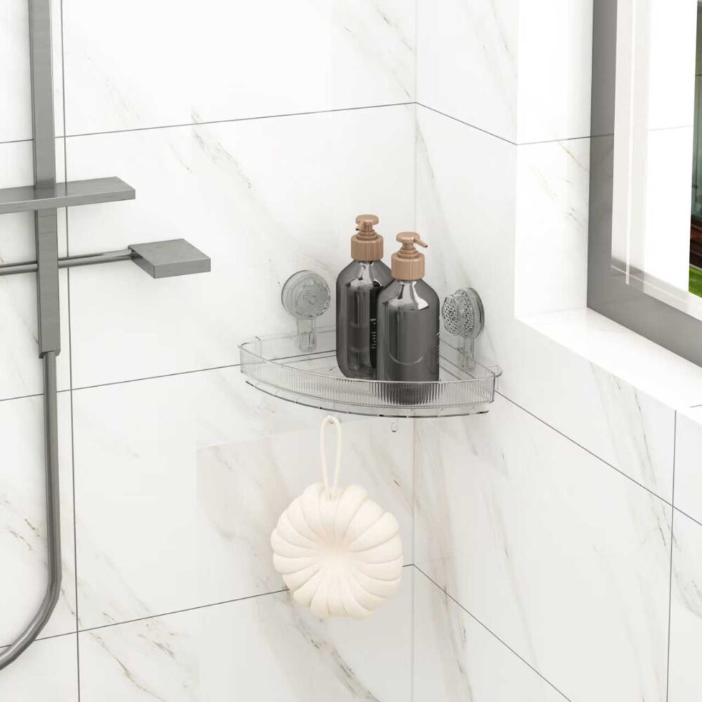 Επιτοίχιο γωνιακό ράφι μπάνιου, πλαστικό, με κρεμάστρες.