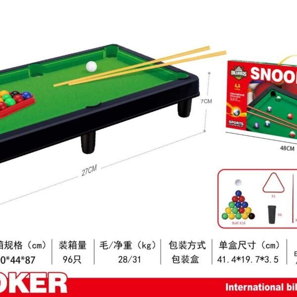 Επιτραπέζιο μπιλιάρδο mini, πλαστικό, με τσόχα, σε υπέροχο ρεαλιστικό σχεδιασμό, με 2 στέκες και πλήρες σετ αξεσουάρ, για τους μικρούς λάτρεις του αθλήματος.