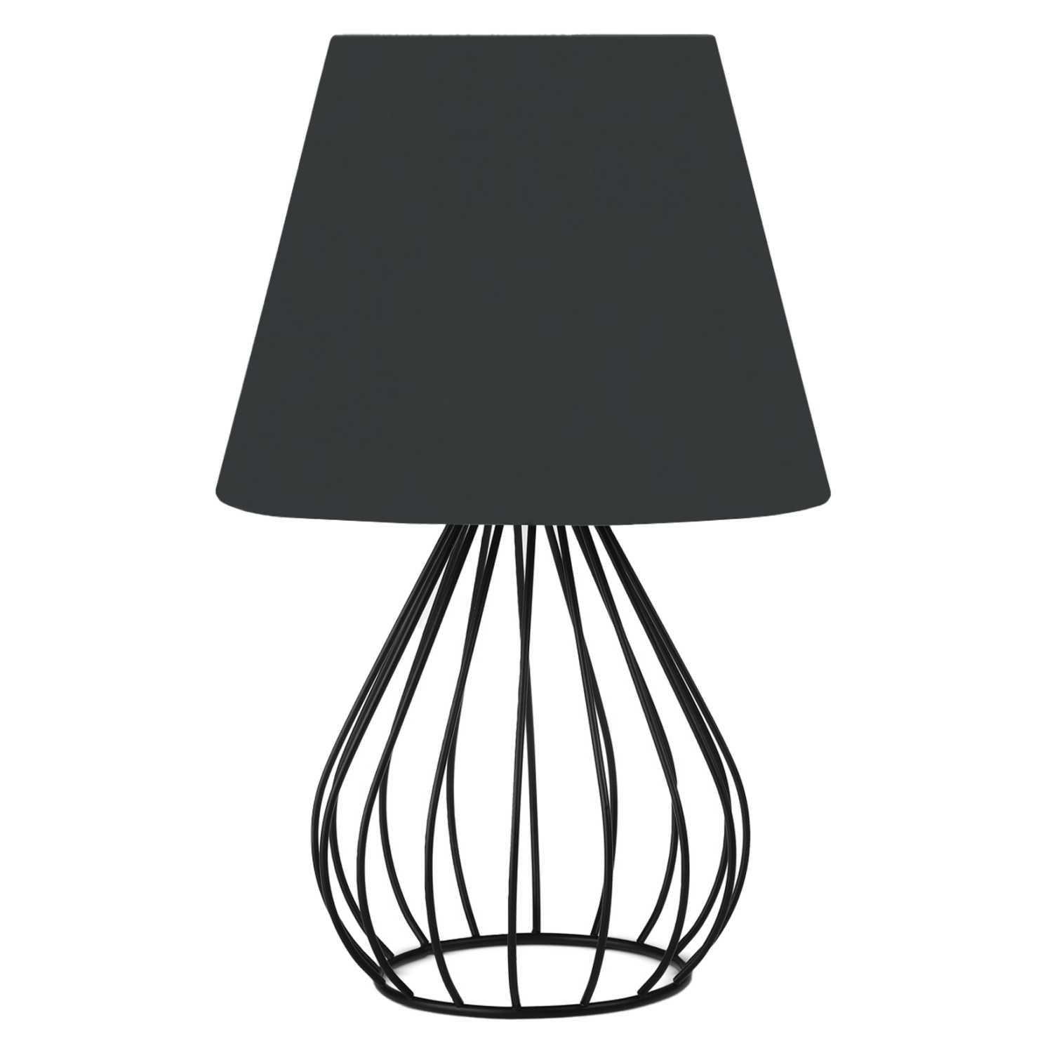Φινέτσα και μοντέρνα γραμμή συναντώνται σε αυτό το επιτραπέζιο φωτιστικό. Βάση και κολώνα έχουν δώσει την θέση τους όμορφα σε ένα μαύρο μεταλλικό πλέγμα σε σχήμα δάκρυ και στην κορυφή του κάθεται το μαύρο τραπεζοειδές καπέλο, δημιουργώντας ένα σύνολο που είναι η επιτομή του μοντέρνου design εσωτερικών χώρων. Ειδικά, το μαύρο χρώμα του καπέλου πραγματικά δίνει την εντύπωση της πολυτέλειας χωρίς όριο.