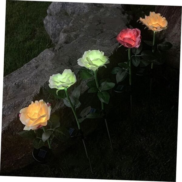 Φωτιζόμενα διακοσμητικά λουλούδια LED με ηλιακό πάνελ φόρτισης και ενσωματωμένη επαναφορτιζόμενη μπαταρία, ιδανικά διακοσμητικά για χρήση σε σημεία που δεν έχουν εύκολη πρόσβαση σε ηλεκτρικό ρεύμα, καθώς τοποθετούνται και χρησιμοποιούνται εξολοκλήρου ασύρματα. Περιλαμβάνουν ειδικό μεταλλικό πάσσαλο για εύκολη και σταθερή τοποθέτηση στο χώμα του κήπου σας ή σε γλάστρα.