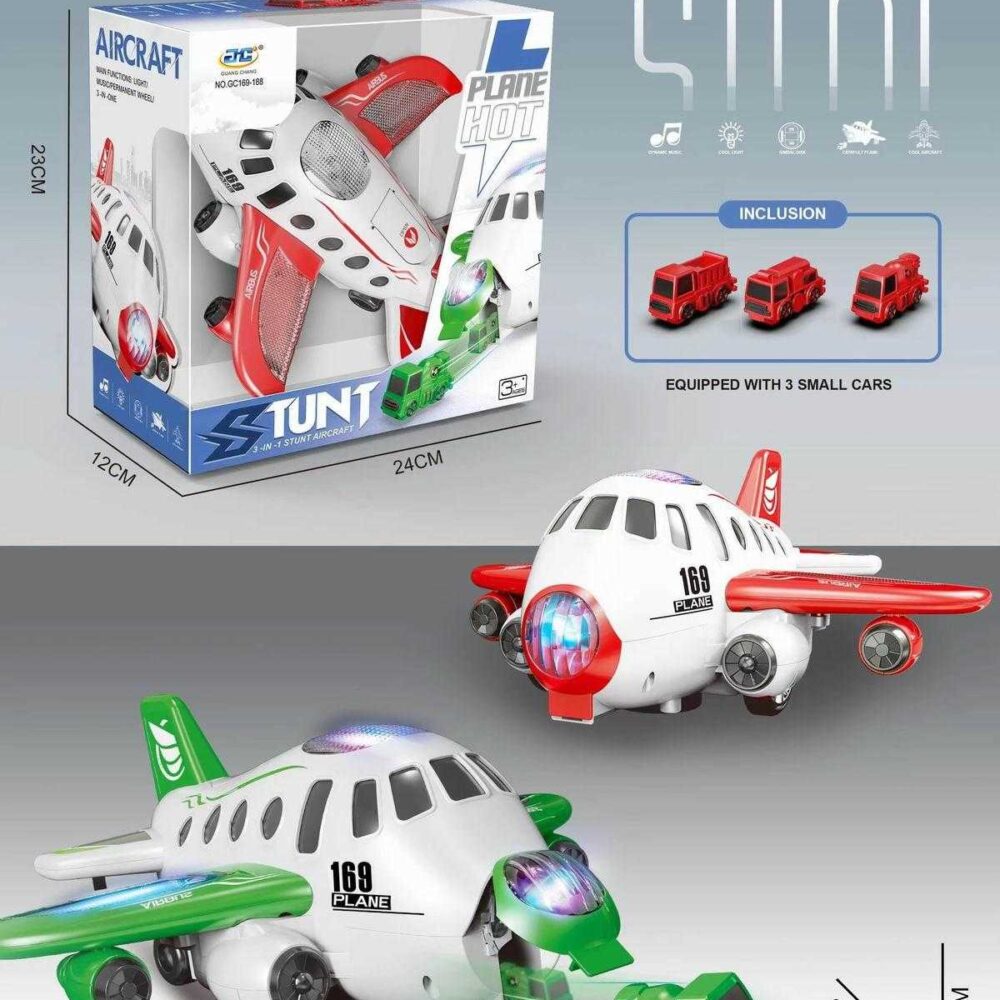 Ηλεκτρονικό αεροπλάνο με ήχο και φωτισμό, με αποθήκη οχημάτων για συναρπαστικές εκπλήξεις και κόλπα!