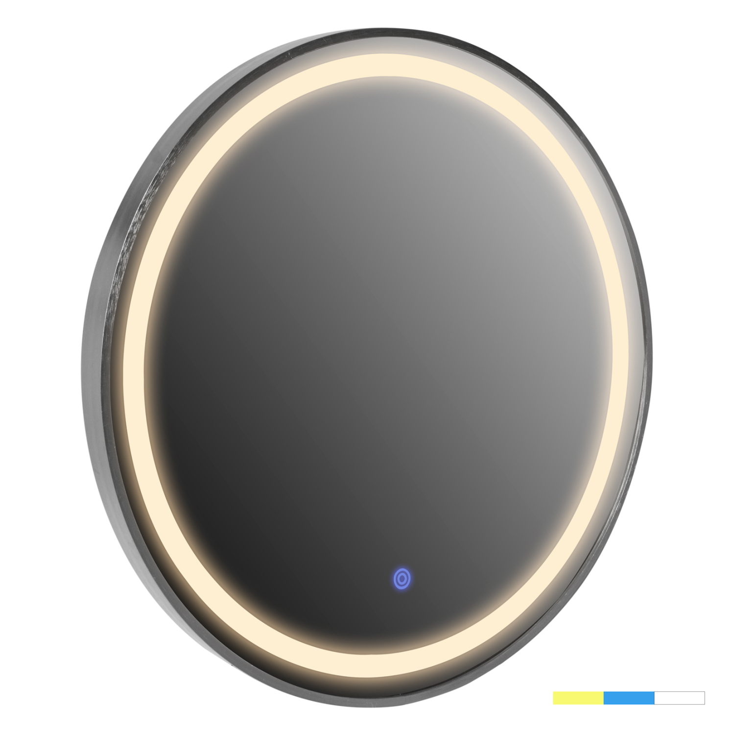 Ο HM9580.40 είναι ένας στρογγυλός καθρέφτης τοίχου με ΓΚΡΙ σκελετό, κομψός και σε άκρως ικανοποιητική διάσταση. Ωστόσο, αυτό που τον διαφοροποιεί σε σχέση με τους απλούς καθρέπτες είναι ότι διαθέτει φωτισμό LED ενσωματωμένο σε κυκλική διάταξη ακολουθώντας την «γραμμή» του πλαισίου. Ο φωτισμός ενεργοποιείται με ένα διακόπτη αφής (σε μπλέ χρώμα) στο εμπρός και κάτω μέρος του καθρέπτη, ενώ παράγει 3 διαφορετικά χρώματα φωτός. Ζεστό (κιτρινωπό), ελαφρύ μπλέ, και φυσικό λευκό, που ενεργοποιούνται πατώντας τον ίδιο διακόπτη αφής. Ένα χρήσιμο «εργαλείο» κυρίως για το μπάνιο αλλά και για οποιοδήποτε άλλο δωμάτιο χρειάζεστε έναν καθρέπτη με φωτισμό!