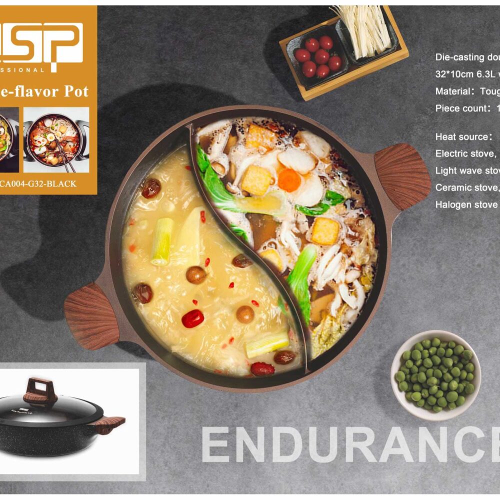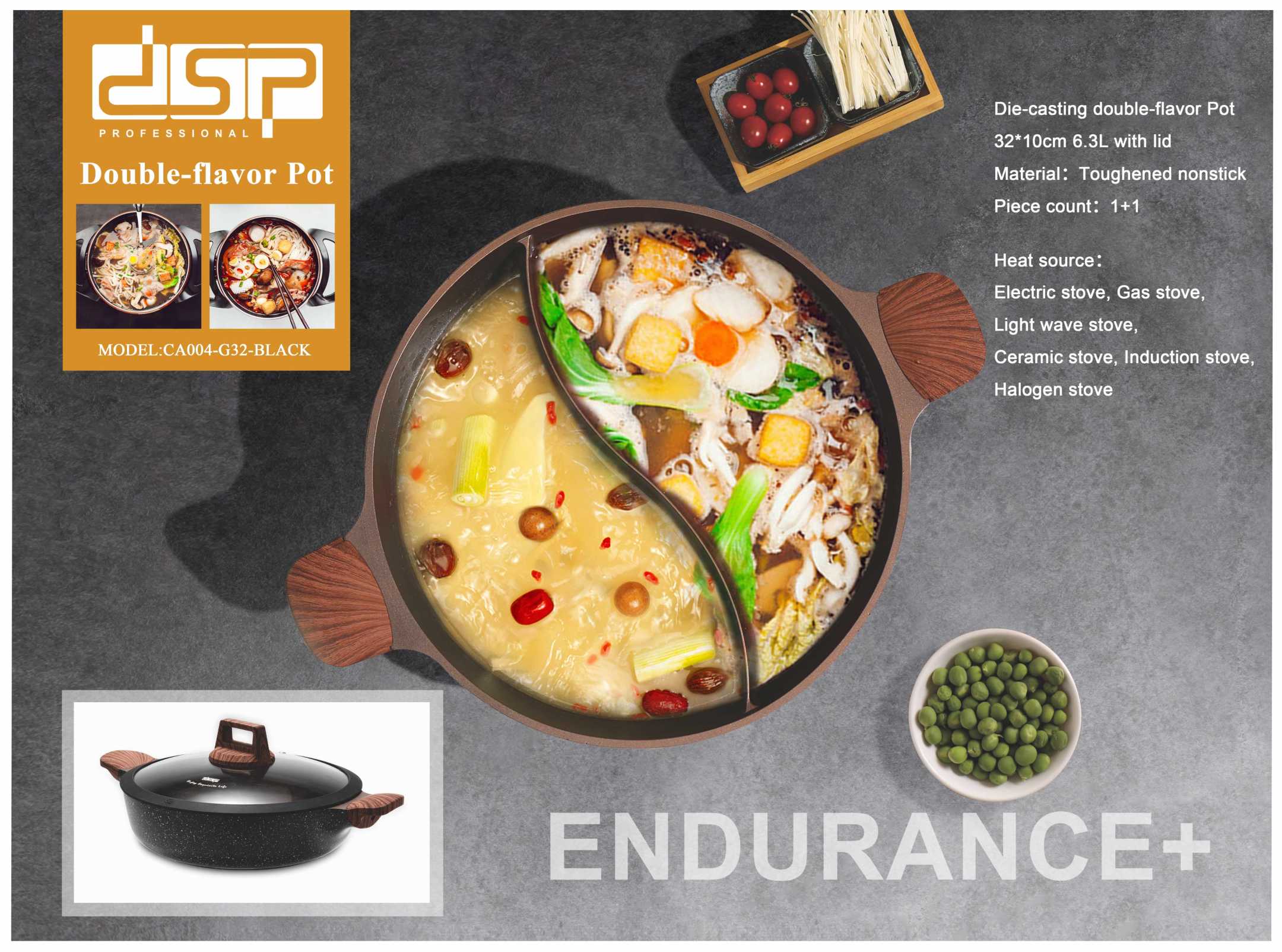 Ρηχή κατσαρόλα υψηλής ποιότητας κατασκευής από την DSP, με 2 διαχωρισμένες θέσεις για παράλληλη ετοιμασία 2 φαγητών, με ισχυρή αντικολλητική επίστρωση και γυάλινο καπάκι.