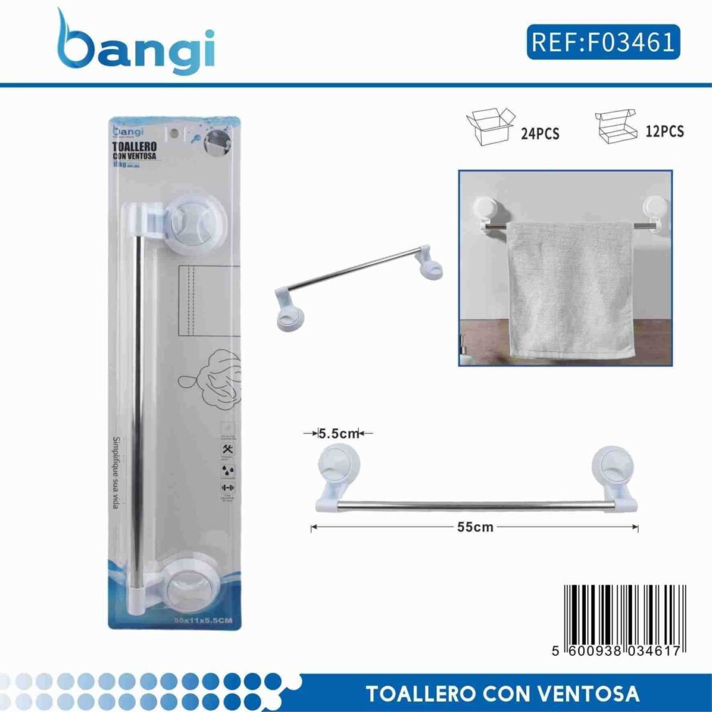 Κρεμάστρα πετσέτας μπάνιου με μεταλλική ράγα inox και πλαστικές βάσεις υψηλής ανθεκτικότητας. Εύκολη τοποθέτηση με ισχυρές βεντούζες, χωρίς να απαιτείται βίδωμα.