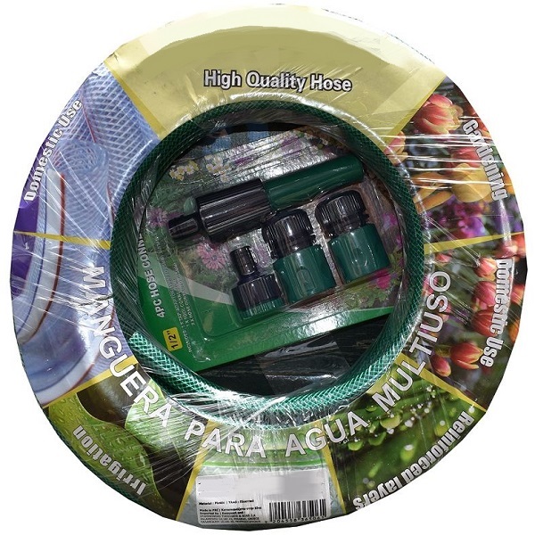 Λάστιχο ποτίσματος, εύκαμπτο και ιδιαίτερα ανθεκτικό, κατάλληλο για επαγγελματική ή οικιακή χρήση. Διαθέτει πλήρες σετ 4 τεμαχίων με εξάρτημα ποτίσματος και ταχυσύνδεσμο βρύσης. Διάμετρος: 1/2”. Μήκος: 20m.
