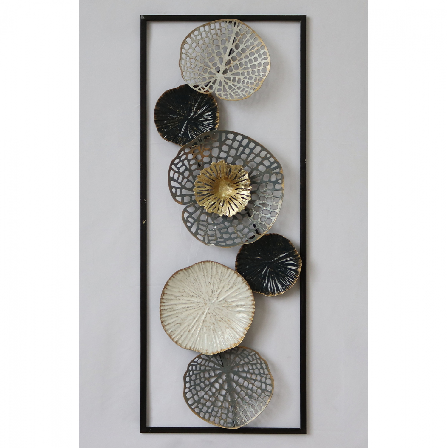 Μεταλλικό διακοσμητικό τοίχου σε μαύρη και λευκή απόχρωση με χρυσές και ασημί λεπτομέρειες.