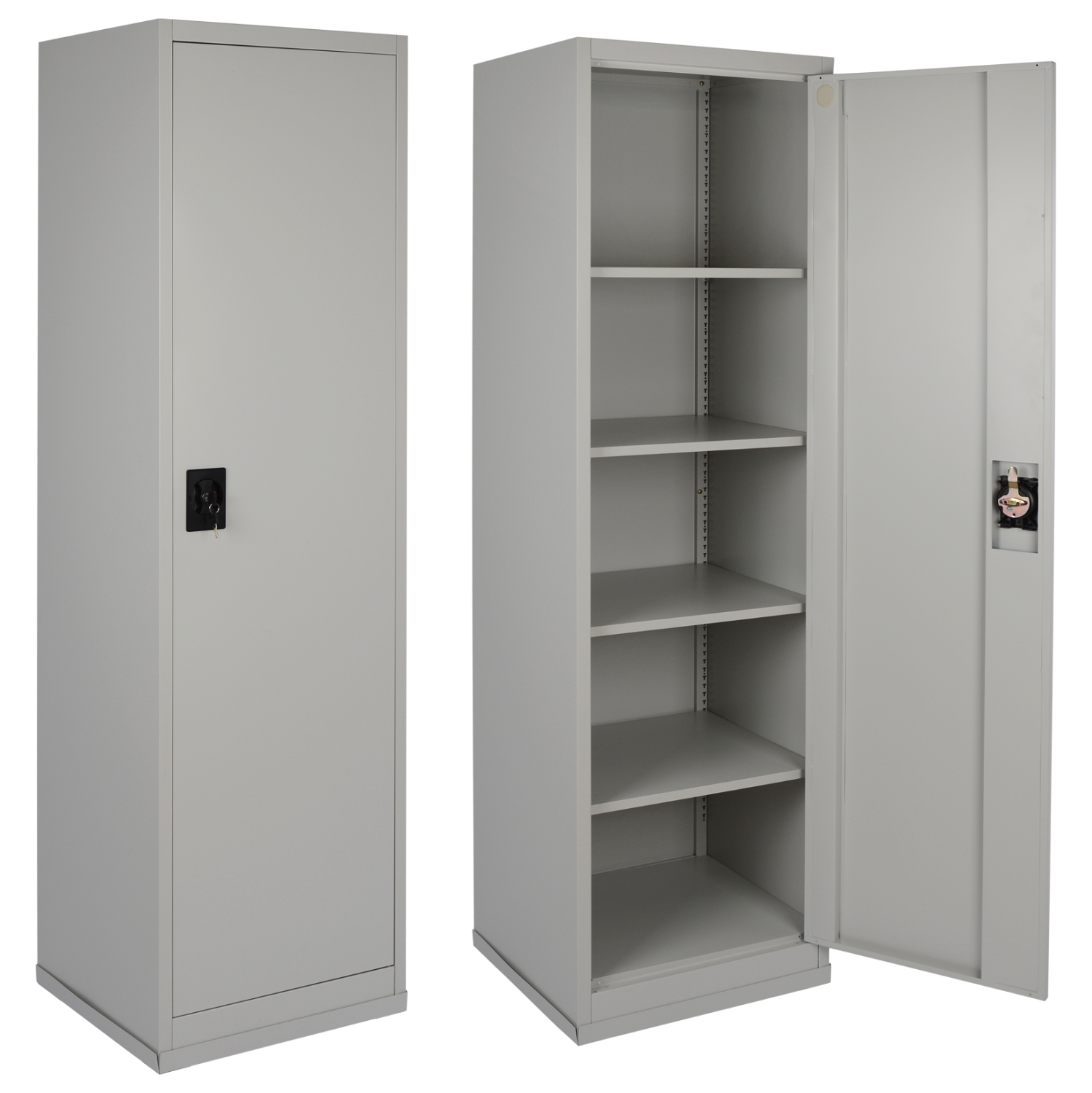 Η OVIEDO είναι μια πρακτικότατη στενή και ψηλή μεταλλική ντουλάπα που έχει φτιαχτεί με γνώμονα την χωρητικότητα και την ανθεκτικότητα. Διαθέτει μία πόρτα και στο εσωτερικό υπάρχουν 4 ράφια που προσαρμόζονται ανάλογα τις ανάγκες σας. Η πόρτα διαθέτει κλειδαριά που κλειδώνει με κλειδί, ενώ το χρώμα της ντουλάπας είναι πολύ ανοιχτό γκρι.