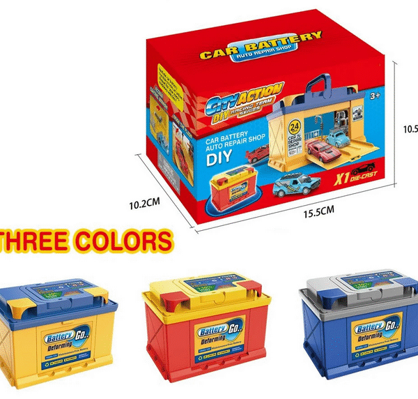 Παιχνίδι σε εντυπωσιακό σχεδιασμό μπαταρίας αυτοκινήτου που ανοίγει και μεταμορφώνεται σε Parking-αυτοκινητόδρομο.