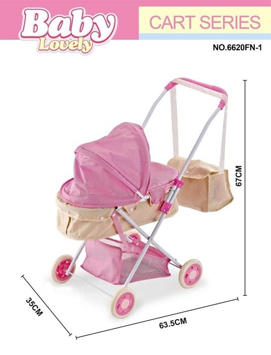 Παιδικό καροτσάκι μωρού με τσαντάκι και καλαθάκι, σε πανέμορφο ρεαλιστικό σχεδιασμό με πολλαπλές δυνατότητες, με υπέροχα χρώματα και με ανθεκτική κατασκευή για ατελείωτες βόλτες με την κούκλα σου! Πτυσσόμενο για εύκολη μεταφορά και αποθήκευση.