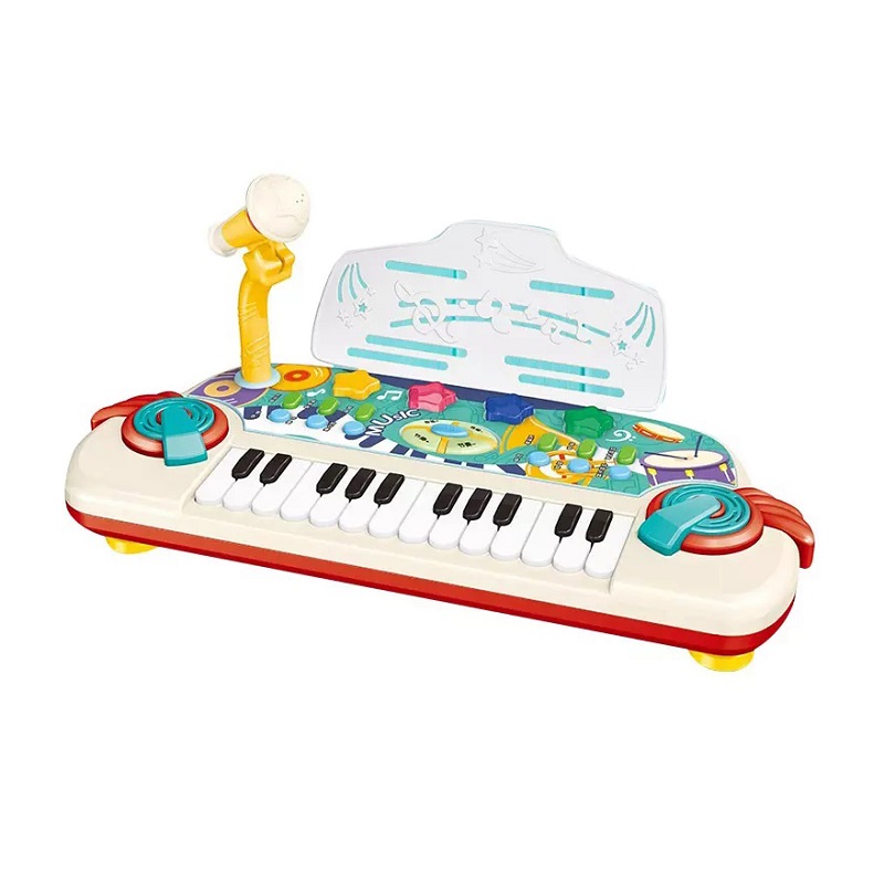Παιδικό εκπαιδευτικό πιάνο, σε υπέροχο πολύχρωμο σχεδιασμό, με μικρόφωνο και πολλαπλές επιλογές ήχων, για τους μικρούς λάτρεις της μουσικής.