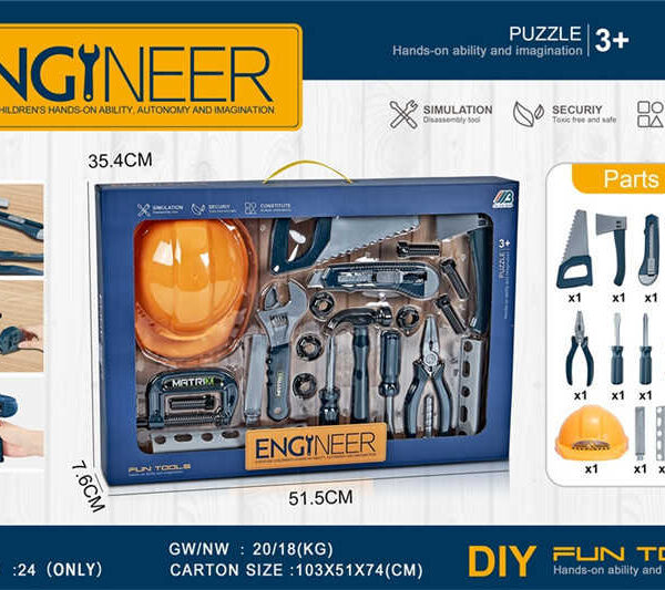 Σετ εργαλείων για παιδιά Παιδικό Σετ Εργαλείων – MT1-2 είναι ένα δημιουργικό παιχνίδι μίμησης που επιτρέπει στα παιδιά να εξερευνήσουν βασικά εργαλεία και να αναπτύξουν δεξιότητες συντονισμού μέσα από ασφαλές και διασκεδαστικό παιχνίδι. Είναι κατάλληλο για παιδιά από 3 ετών και άνω και πληροί τα πρότυπα ασφαλείας για παιδικά παιχνίδια.