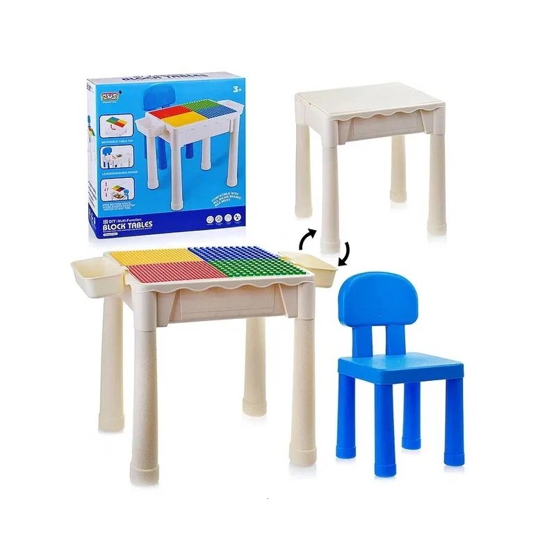 Παιδικός πάγκος με καρεκλάκι, ειδικός για κατασκευές με τουβλάκια και δραστηριότητες DIY.