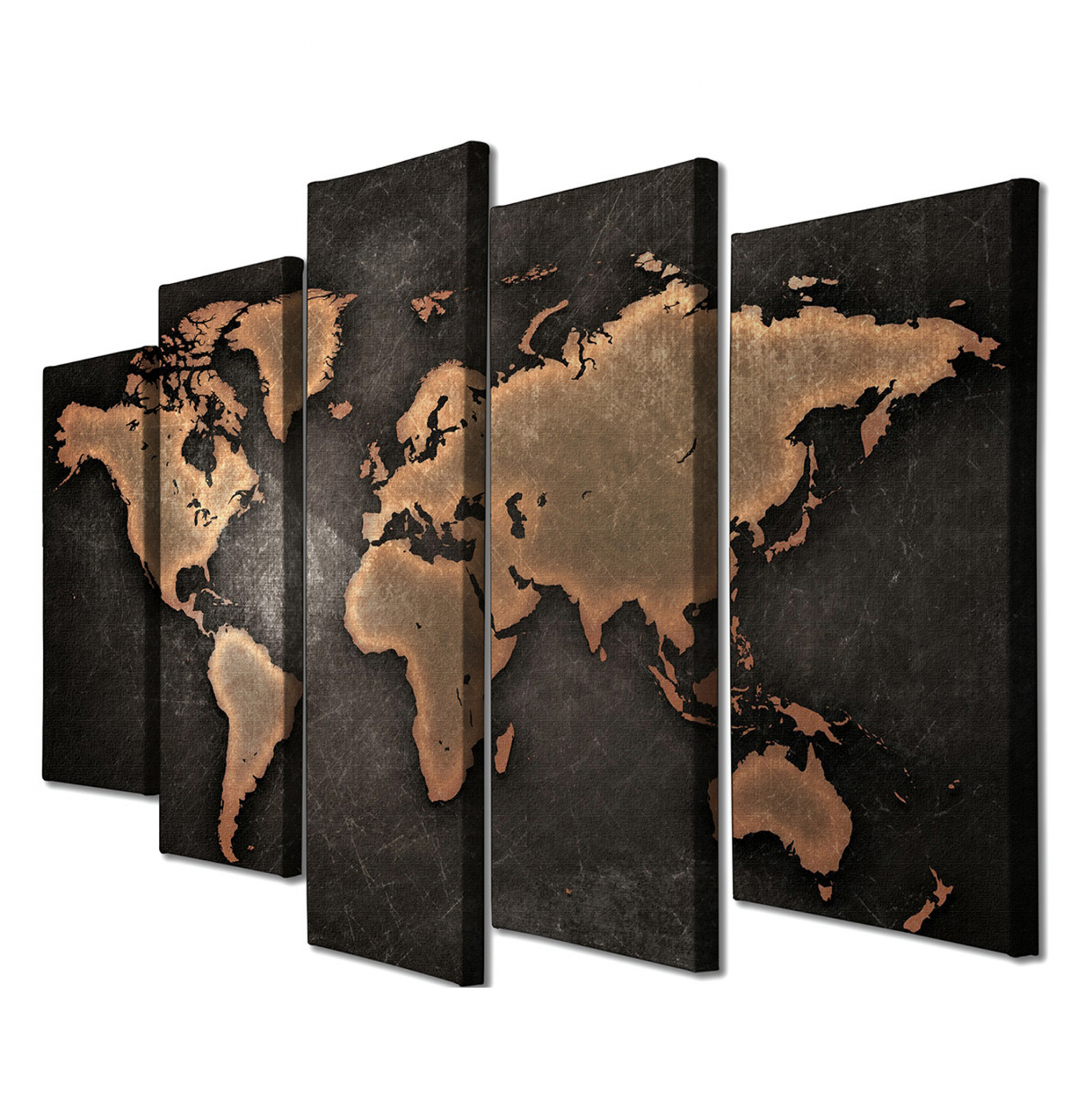 Διακοσμητικός πεντάπτυχος πίνακας σε καμβά σε σχέδιο world map.