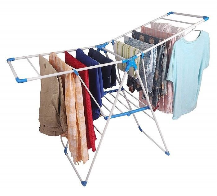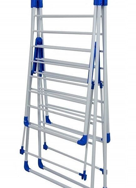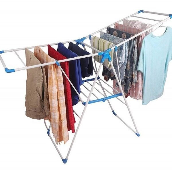 Πρακτική απλώστρα ρούχων δαπέδου με μεταλλικό σκελετό και πολλαπλές θέσεις ρούχων.