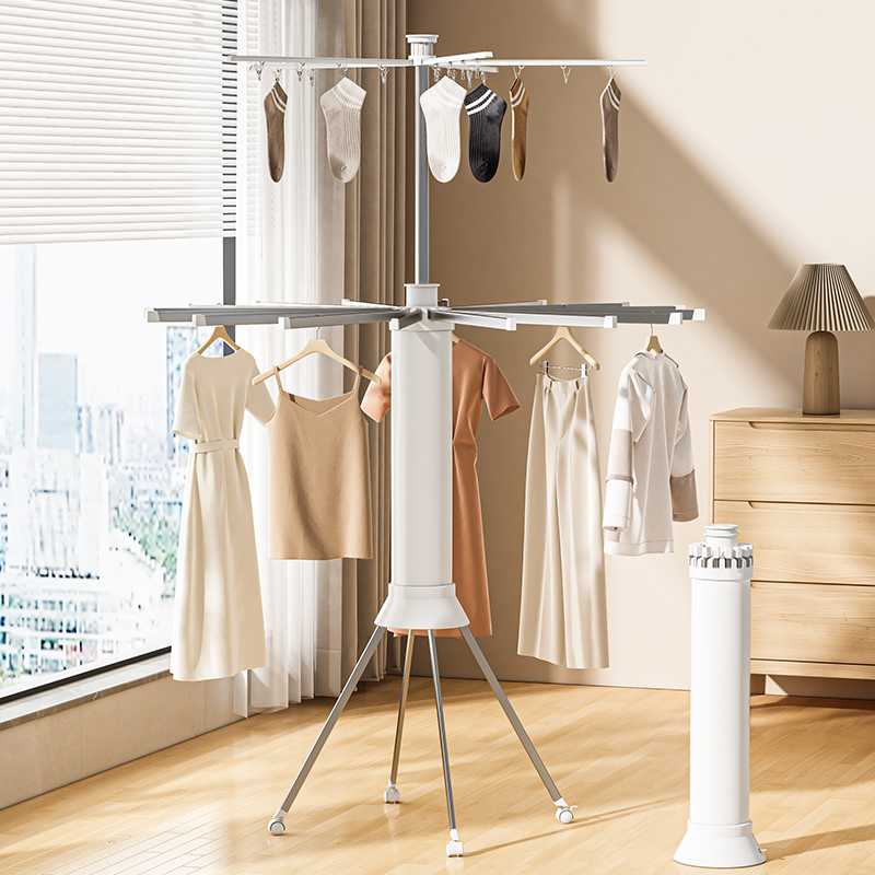 Πτυσσόμενη κρεμάστρα δαπέδου και απλώστρα ρούχων πολλαπλών χρήσεων, με μεταλλικό σκελετό, κλιπς/μανταλάκια μικρών ρούχων και ροδάκια μετακίνησης.
