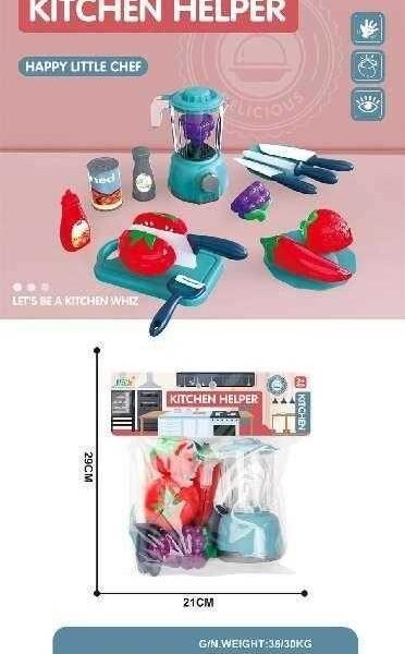 Παιδικό σετ κουζίνας με μπλέντερ, αξεσουάρ, σκεύη και τρόφιμα, σε υπέροχο πολύχρωμο σχεδιασμό.