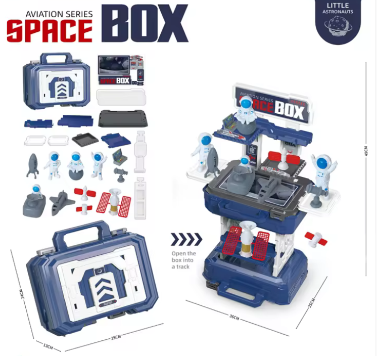 Σετ παιχνίδι διαστημικός σταθμός σε υπέροχο σχεδιασμό με πολλά αξεσουάρ, σε πρακτικό βαλιτσάκι μεταφοράς που μετατρέπεται πανεύκολα σε πάγκο παιχνιδιού.