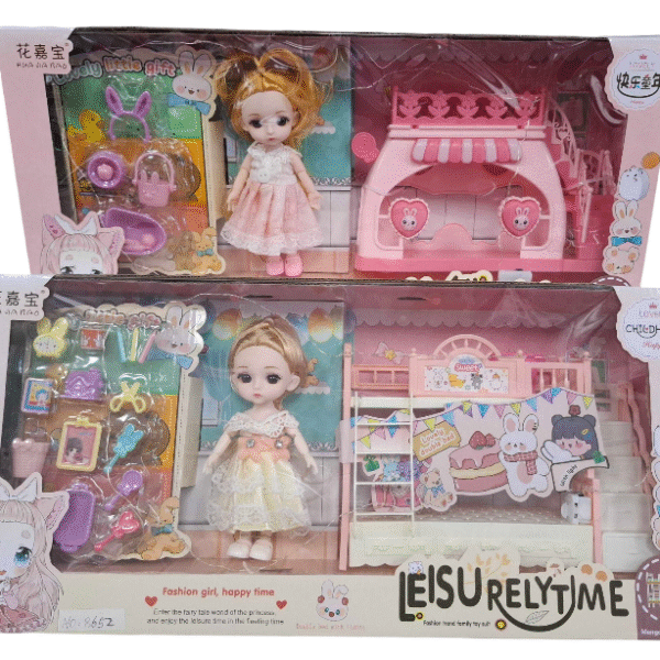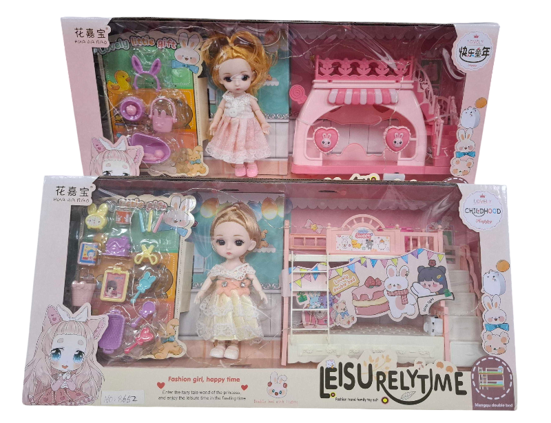 Σετ κούκλα με κρεβατάκι και πλήρες σετ αξεσουάρ περιποίησης και φροντίδας.