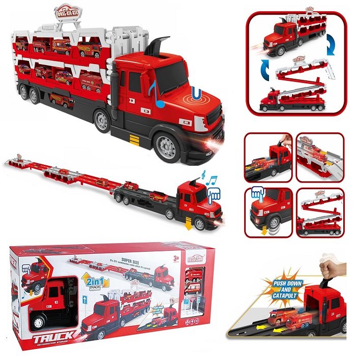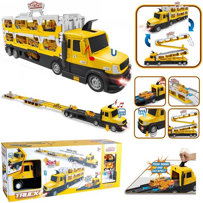 Σετ όχημα-πάρκινγκ που μετατρέπεται πανεύκολα σε μεγάλο αυτοκινητόδρομο με εκτοξευτή που με το πάτημα ενός μοχλού θα κάνει τα αυτοκινητάκια σου να τρέχουν σε εντυπωσιακές ταχύτητες. Διαθέτει πτυσσόμενη βάση οχημάτων για εύκολο μάζεμα και αποθήκευση.