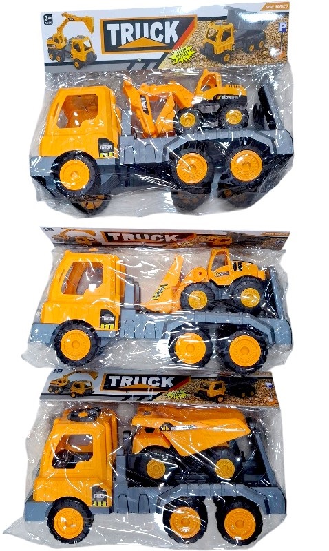 Σετ όχημα εργασίας και μεταφοράς αγροτικών οχημάτων, με 2 οχήματα και πολλαπλές δυνατότητες παιχνιδιού.