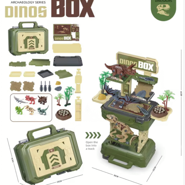 Σετ παιχνίδι πάρκο Δεινοσαύρων σε υπέροχο σχεδιασμό με πολλά αξεσουάρ, σε πρακτικό βαλιτσάκι μεταφοράς που μετατρέπεται πανεύκολα σε πάγκο παιχνιδιού.