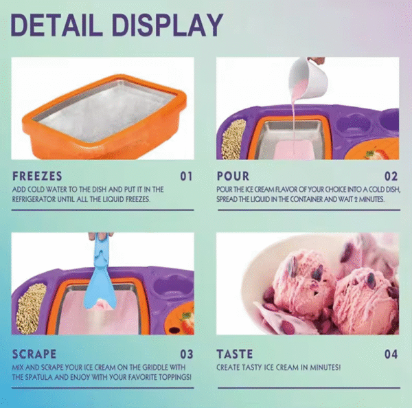 Απλά τοποθέτησε νερό στην ειδική βάση, αφήσε το να παγώσει στην κατάψυξη, στη συνέχεια ρίξε την αγαπημένη σου κρέμα παγωτού πάνω στο παγωμένο δοχείο, ανακάτεψε σιγά σιγά μέχρι να αρχίσει να παγώνει και απόλαυσε το υπέροχο παγωτό που μόλις έφτιαξες!