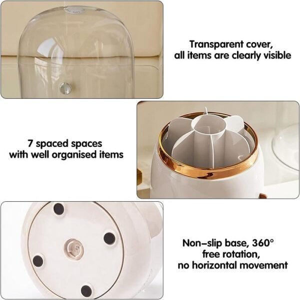 Θήκη οργάνωσης πινέλων μακιγιάζ , πλαστική με 7 διαφορετικούς χώρους με διαχωριστικά, προστατευτικό διαφανές καπάκι για να διατηρείτε τα πινέλα σας μακριά από σκόνη και περιστρεφόμενη βάση 360° για εύκολη διαχείριση.