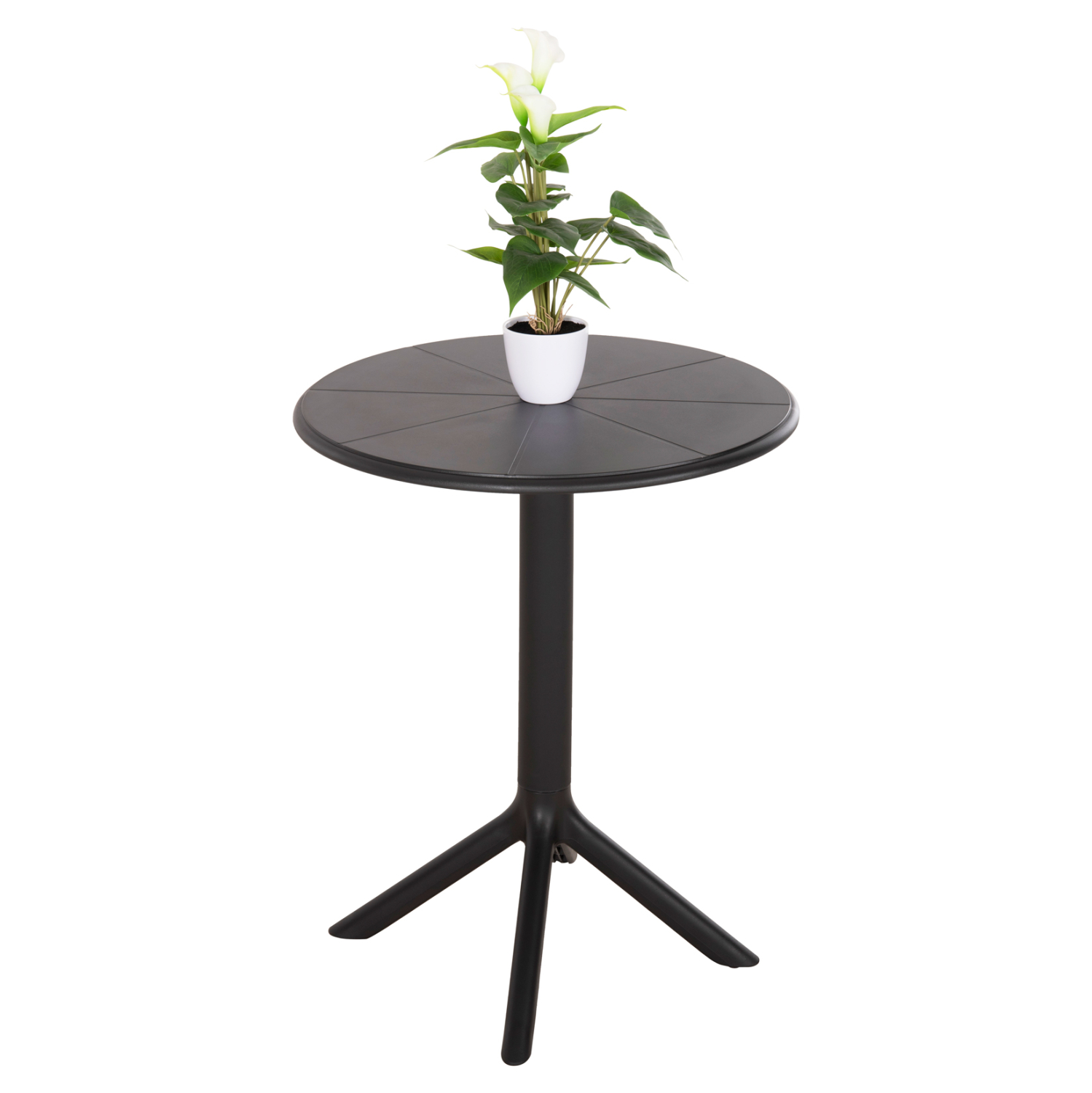 Το τραπέζι πολυπροπυλενίου TERRIN σε ΜΑΥΡΟ χρώμα είναι η ιδανική πρόταση για χρήση σε εξωτερικούς χώρους, είτε επαγγελματικούς (χώροι δεξιώσεων, εταιρείες catering, κλπ.) είτε για το σπίτι. Το τραπέζι είναι στρογγυλό, ενώ η στήριξη γίνεται με μια κολώνα στο κέντρο που καταλήγει σε 4 πόδια («νύχια»).