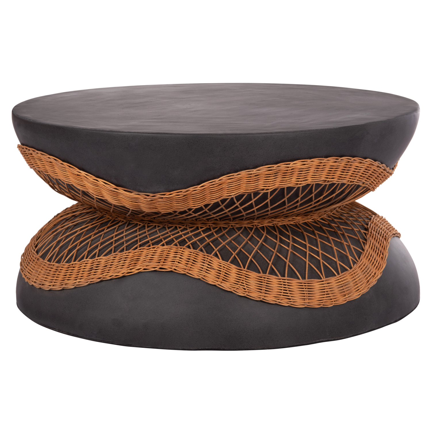 Το τραπέζι σαλονιού ANNA είναι στρογγυλό με όμορφη διακόσμηση από φυσικό Rattan στη μέση του. Είναι κατασκευασμένο εξολοκλήρου από Fiber Cement σε ΜΑΥΡΟ χρώμα και αποτελεί ιδανικό συμπλήρωμα τόσο για το σπίτι, όσο και για επαγγελματικούς χώρους, όπως ξενοδοχεία, AirBnB, κτλ.