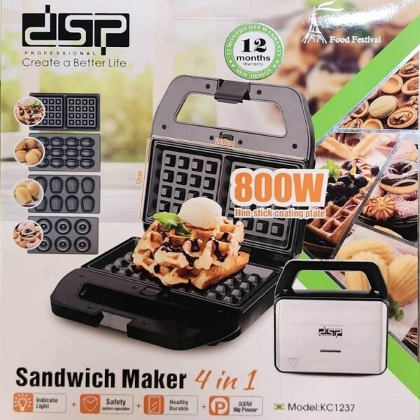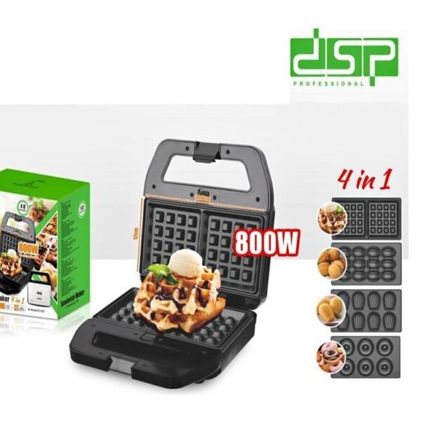 To νέο πολυεργαλείο της DSP 4 σε 1, με σετ 4 πλάκες για βάφλα, ντόνατς, μπισκότα και πιτάκια, θα γίνει η νέα αγαπημένη σας συσκευή κουζίνας καθώς προσφέρει πολλαπλές δυνατότητες για τα αγαπήμενα σας φαγητά και σνακ. Με υψηλή απόδοση και ενισχυμένη αντικολλητική επίστρωση στις πλάκες για ομοιόμορφο ψήσιμο και πολύ εύκολο καθάρισμα.