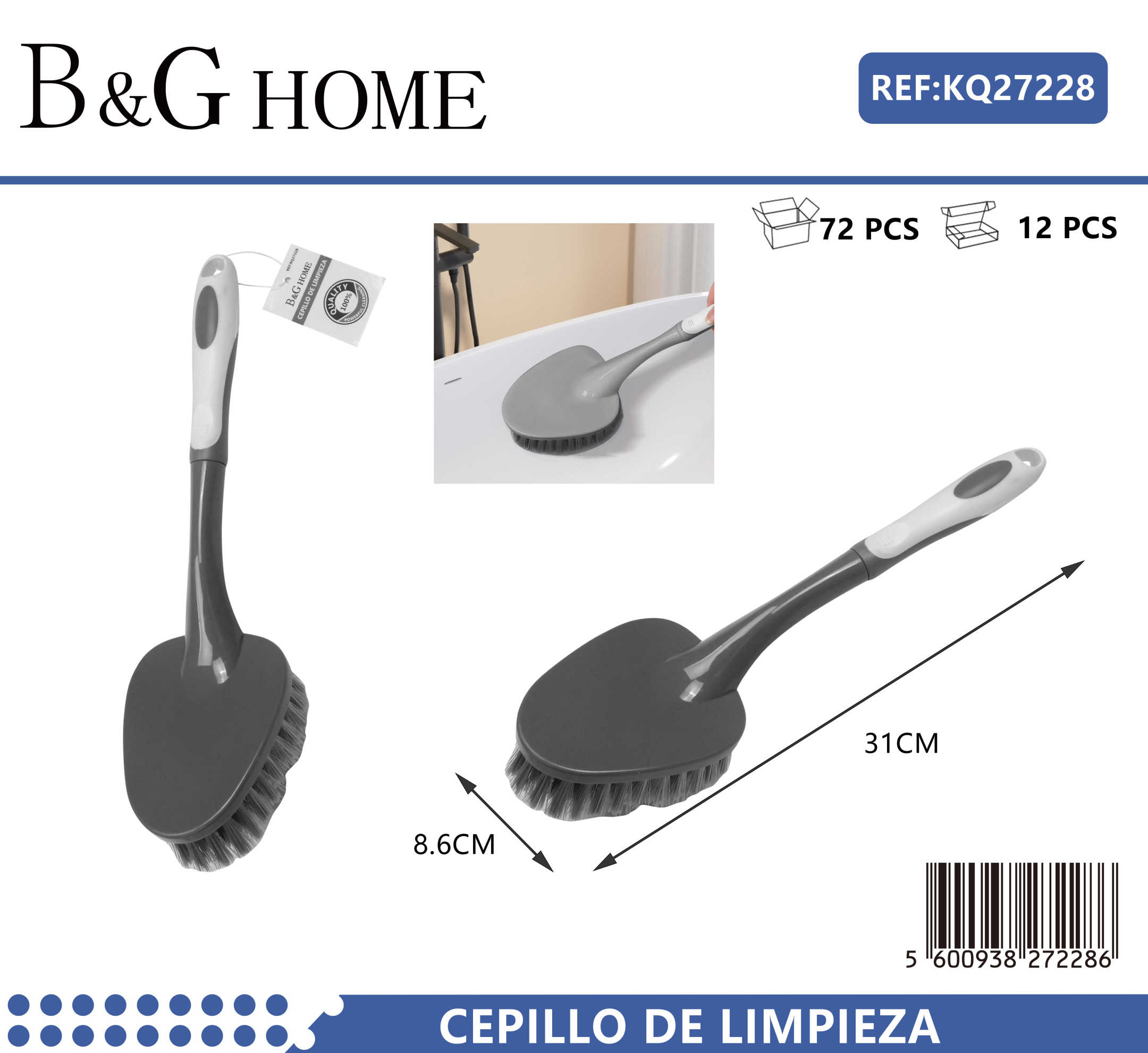 Βουρτσάκι γενικού καθαρισμού με εργονομική λαβή και ανθεκτική κατασκευή, ιδανικό για το μπάνιο, την κουζίνα ή οποιαδήποτε οικιακή εργασία.